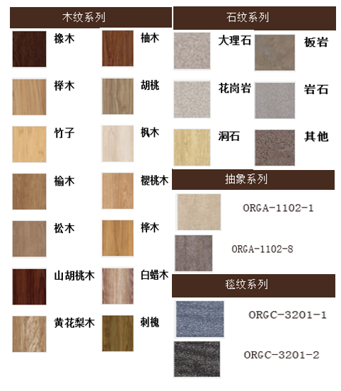 公司產(chǎn)品豐富多樣,不同類型的圖案,多達(dá)幾千種顏色,廣泛應(yīng)用與商業(yè)和住宅的塑料地板,環(huán)保又安全。