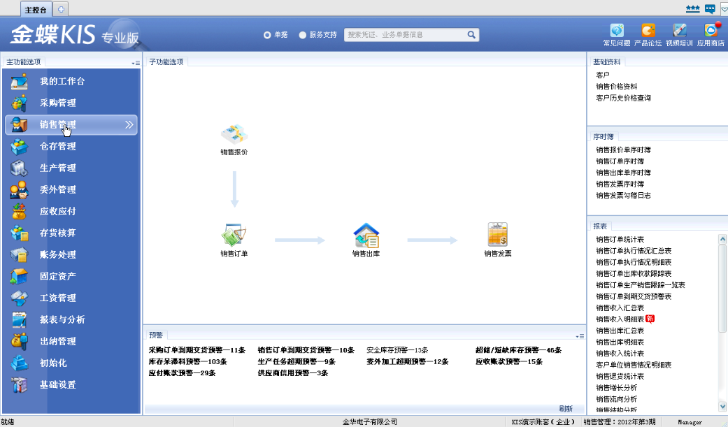 支持現(xiàn)銷(xiāo)、賒銷(xiāo)、委托代銷(xiāo)等多種銷(xiāo)售方式;客戶信用管理;多價(jià)格管理體系,按客戶、數(shù)量、時(shí)間設(shè)置價(jià)格;報(bào)價(jià)管理、訂單執(zhí)行進(jìn)度跟蹤;銷(xiāo)售和盈利情況分析、銷(xiāo)售業(yè)績(jī)分析。