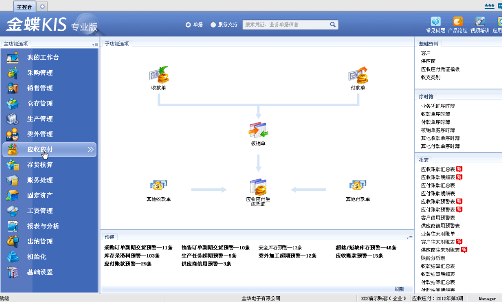 支持預(yù)收款、預(yù)付款管理;支持多種核銷(xiāo)類(lèi)型,快速進(jìn)行多方核銷(xiāo);支持應(yīng)收應(yīng)付直接生成財(cái)務(wù)憑證;支付其它應(yīng)付應(yīng)付款管理;自動(dòng)生成往來(lái)對(duì)賬單。