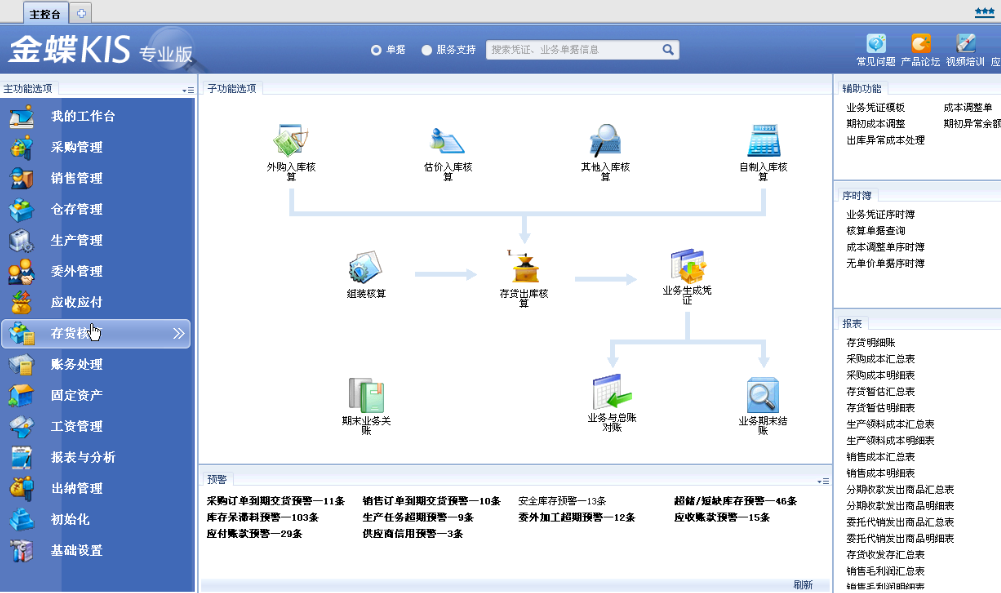 支持總倉(cāng)、分倉(cāng)獨(dú)立核算;多種核算方式,通過(guò)向?qū)Х绞?,快捷地完成存貨成本核算;提供外?gòu)、估價(jià)、自制、其它入庫(kù)的成本核算功能,采購(gòu)費(fèi)用自動(dòng)分?jǐn)?;自?dòng)盤(pán)盈盤(pán)虧,庫(kù)存成本調(diào)整功能;自動(dòng)生成憑證。