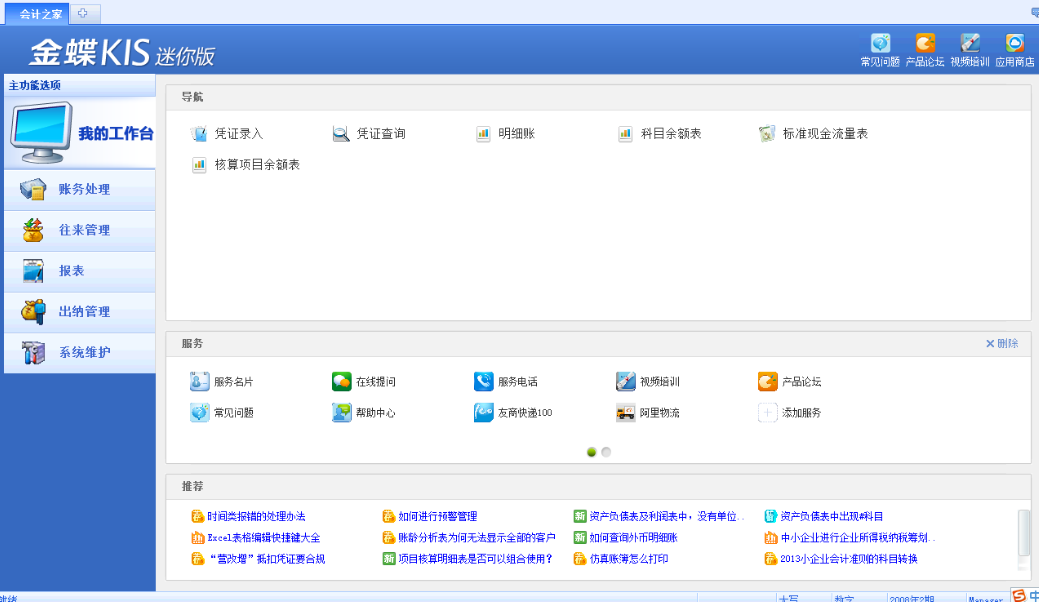 金蝶KIS迷你版高度集成了小型企事業(yè)單位要使用的賬務(wù)處理、報(bào)表、出納管理、往來(lái)管理和合同管理等功能模塊,在軟件的集成度、會(huì)計(jì)管理功能、安全性、通用性、操作的方便性、用戶界面、與其它常見應(yīng)用軟件的接口等方面均有重大突破。